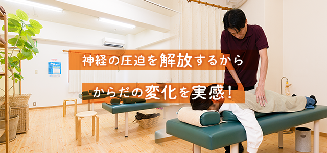 硬く縮んだ筋肉を的確にとらえ、左右のバランスを整え、骨格の歪みをとれば、神経の圧迫がとれ、血液の循環もよくなり自然治癒力もアップします。